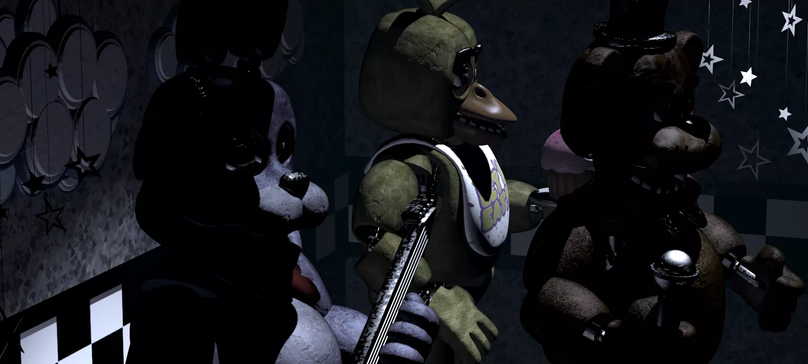 The game is set in a seemingly innocent children's pizzeria, a facade that contrasts sharply with the underlying horror. The vibrant colors of the restaurant - bright reds, yellows, and blues - are juxtaposed with the darker, more sinister elements, creating a visual dissonance that evokes unease. The character designs of the animatronics are particularly noteworthy. Each character, from Freddy Fazbear to Bonnie, Chica, and Foxy, is crafted with meticulous detail, making them both unsettling and memorable. Their lifelike movements and eerie expressions contribute to the tension,